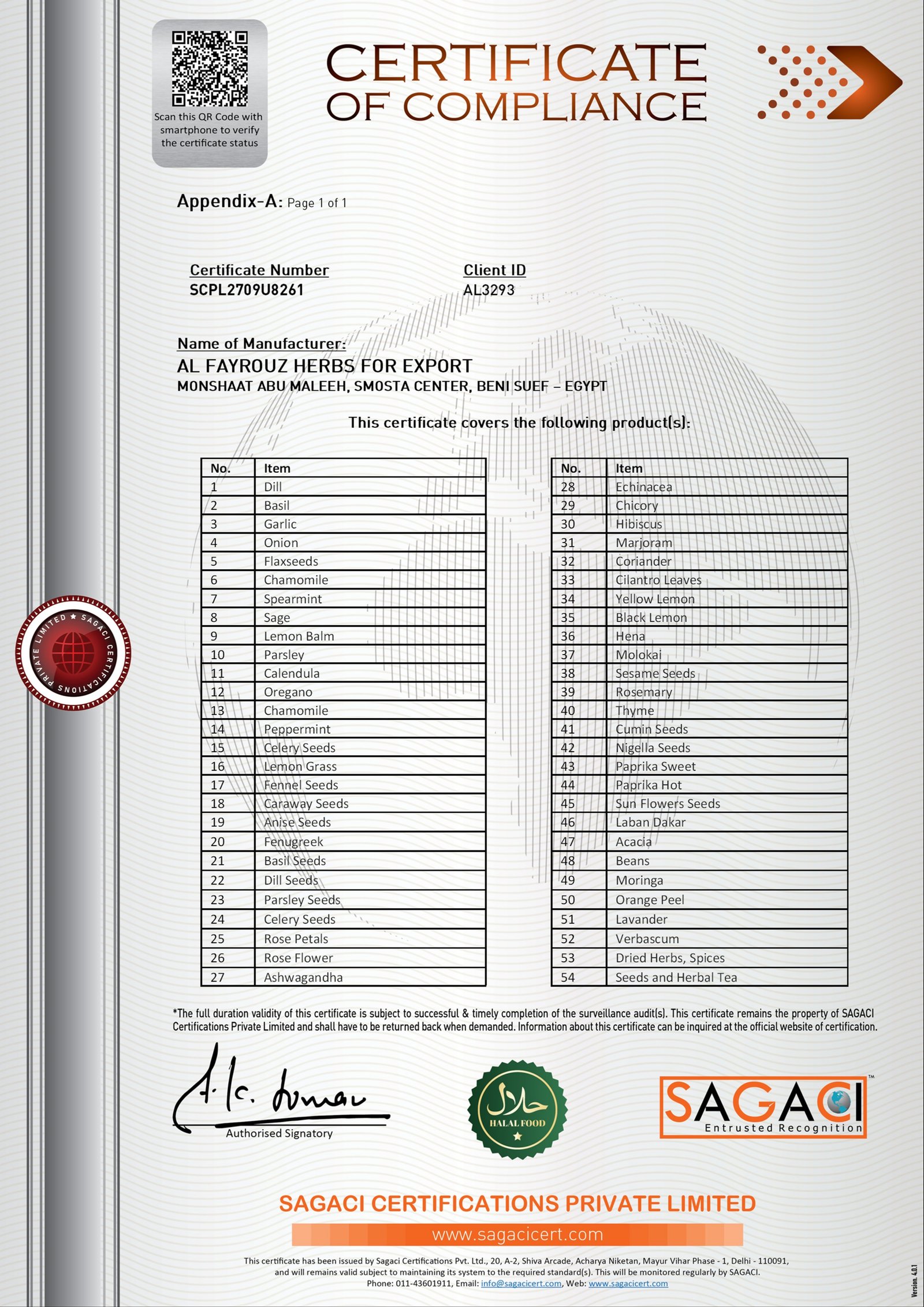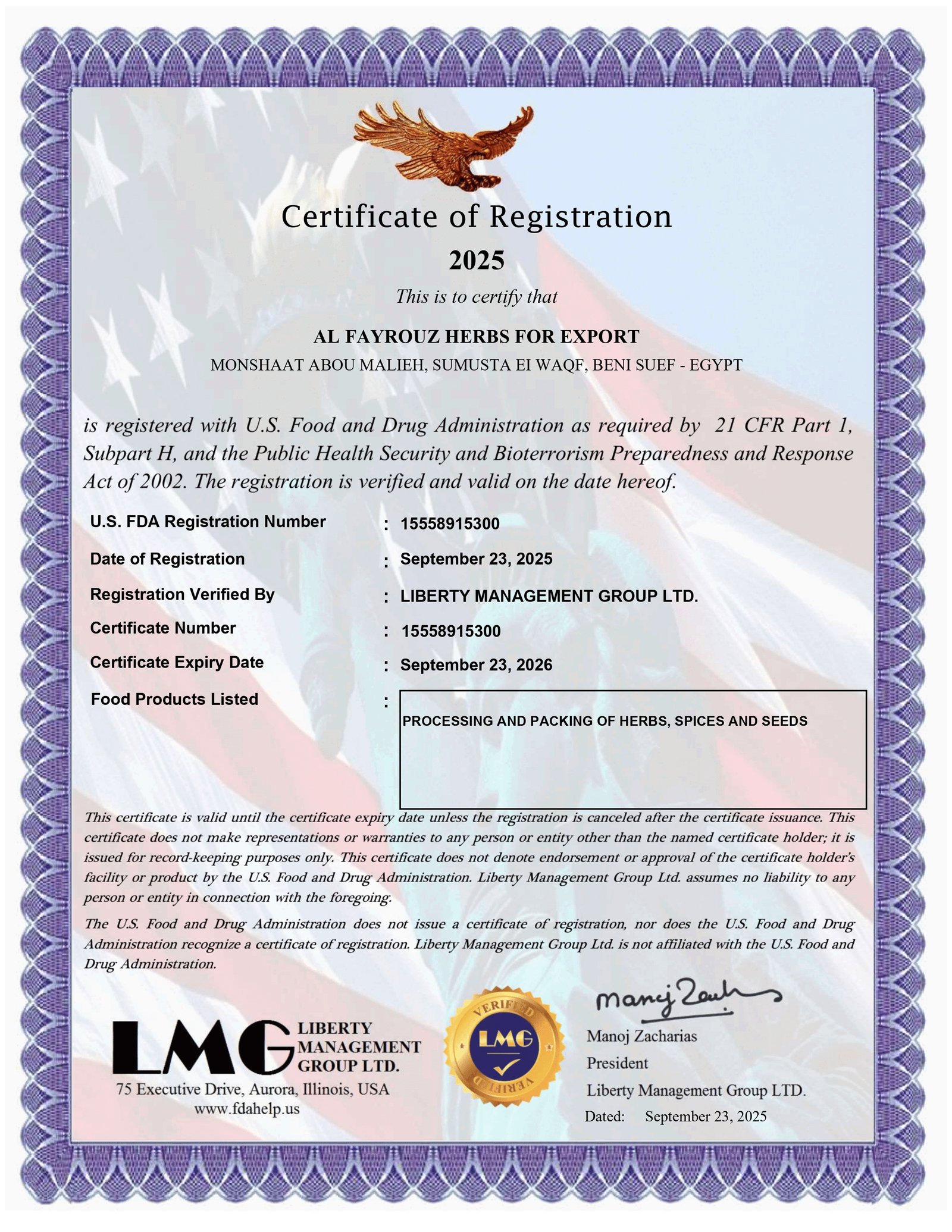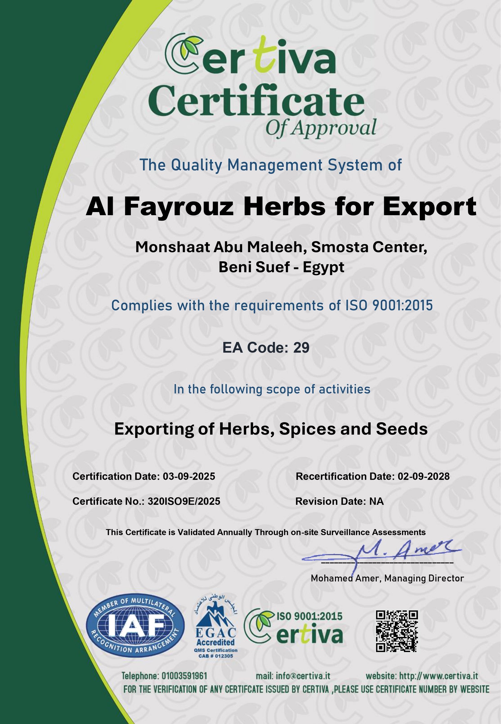 شهادة نظام سلامة الغذاء